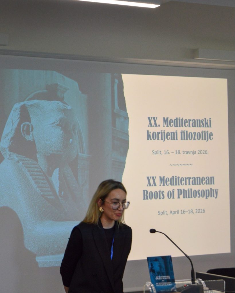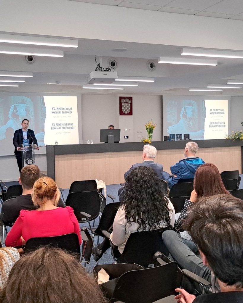 Доцент Жељко Шарић учествовао је на јубиларној, двадесетој међународној научној конференцији Медитерански коријени филозофије, одржаној од 16. до 18. априла 2026. године на Филозофском факултету Свеучилишта у Сплиту (Poljička cesta 35, дворана „Marko Marulić”). Конференцију су заједнички организовали Хрватско филозофско друштво и Одсјек за филозофију сплитског Филозофског факултета.