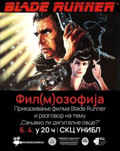 Пројекција филма ,,Blade Runner” вечерас у СКЦ УНИБЛ Програм „Фил(м)озофија“ од априла доноси сваког мјесеца приказивање филмских класика, уз разговоре са филозофима о темама које